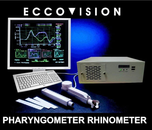 Our practice uses the Eccovision Acoustic Pharyngometer / Rhinometer system from Sleep Group Solutions to test our patients nasal and oral airways. The device sends sound waves into the airway and the reflected sound waves are measured by the machine to tell us how big the airway is. The Rhinometer measures the nasal airway and the Pharyngometer measures the oral airway. Both systems are FDA cleared and a highly effective way for us to identify the site and severity of airway collapse as it related to snoring and sleep related breathing problems.